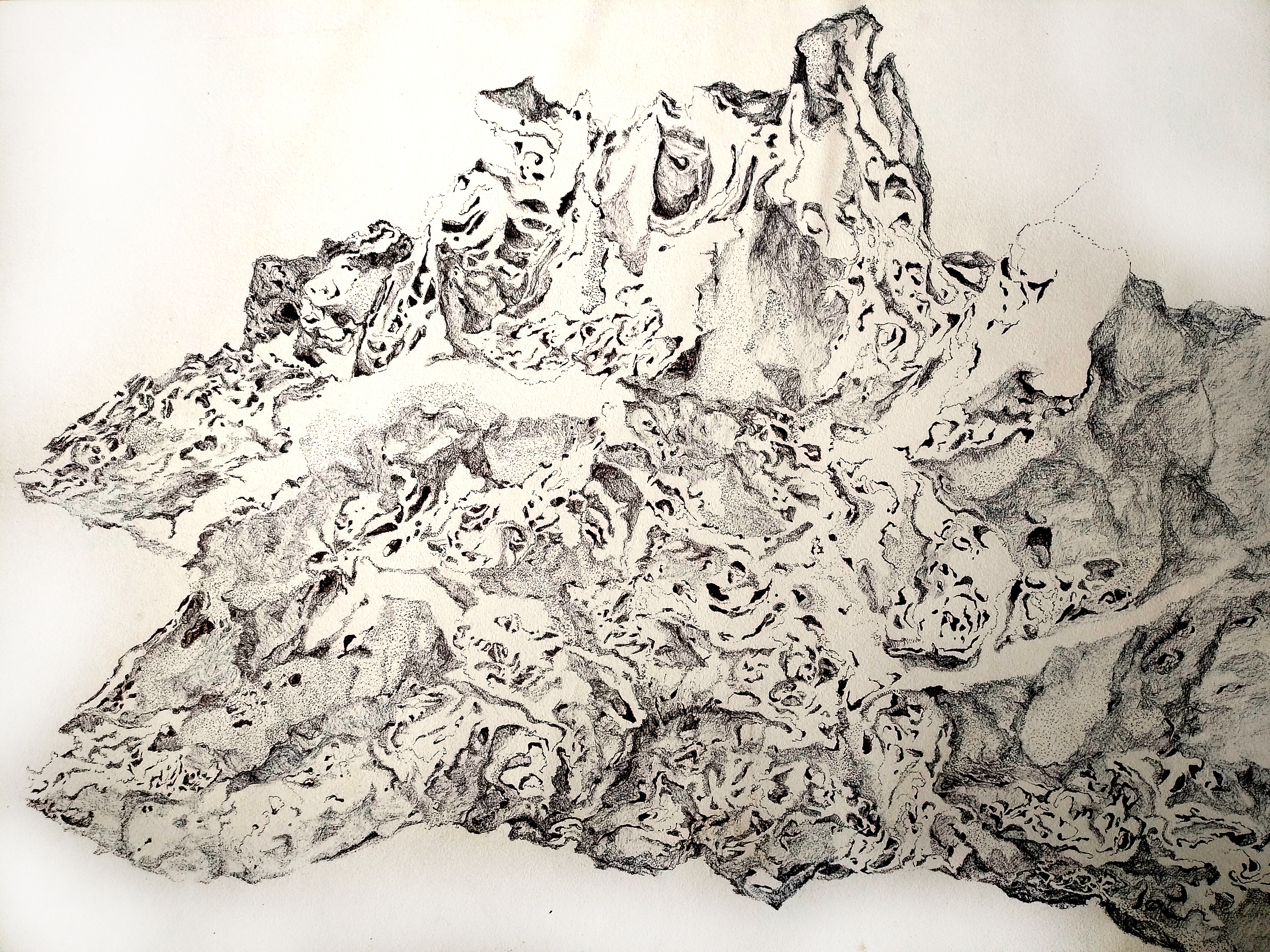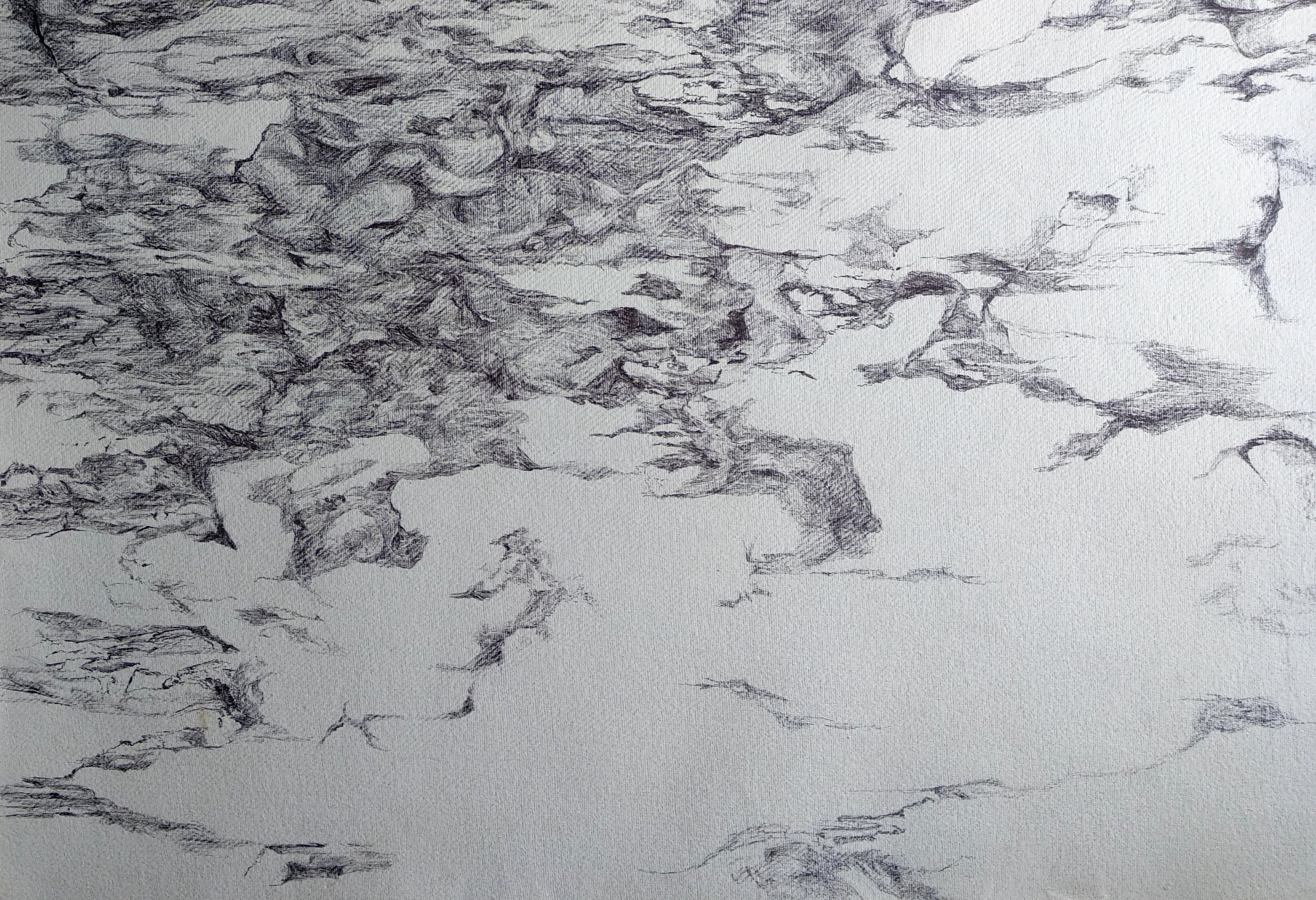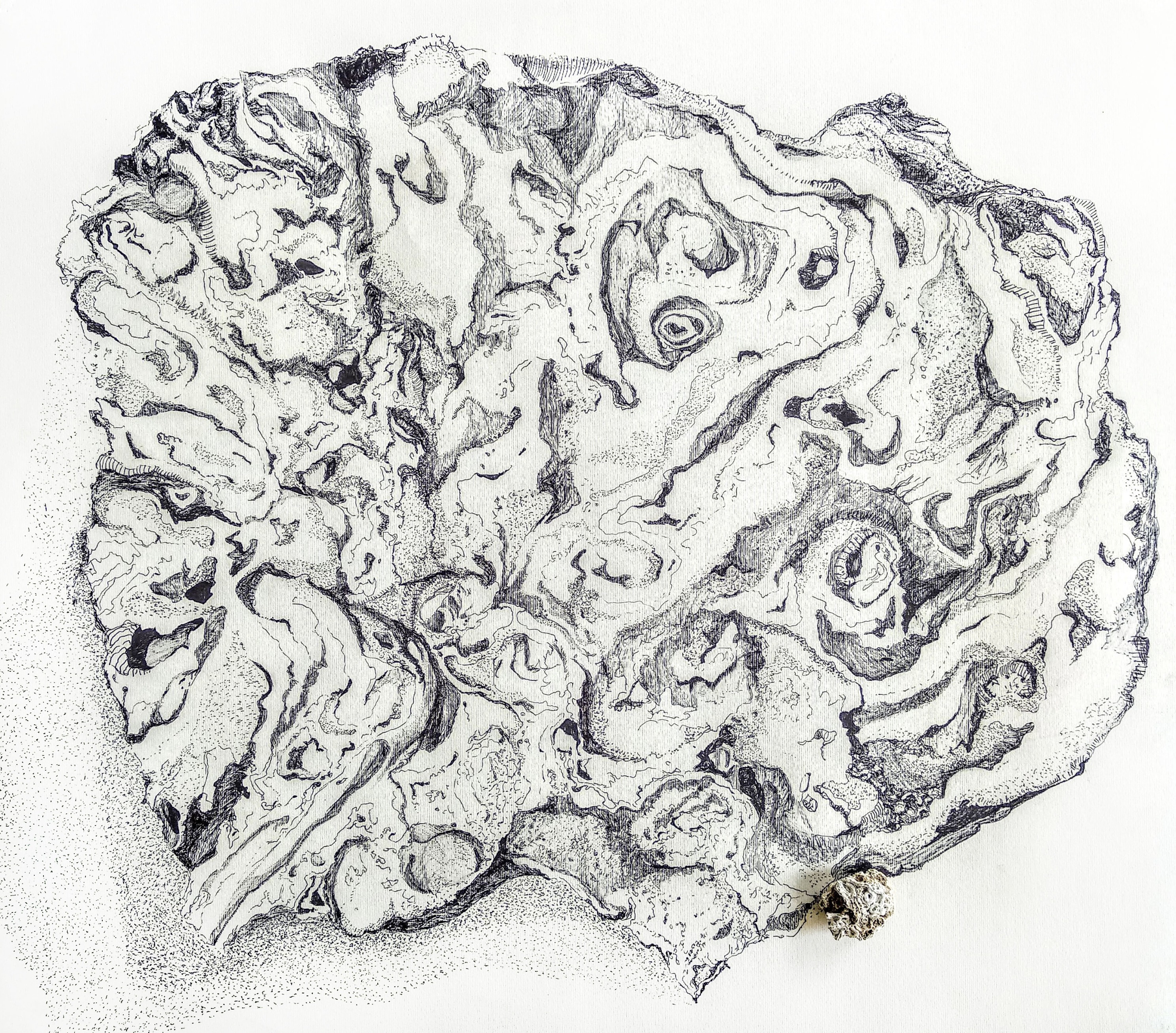 This series of drawings is an on-going engagement that involves choosing small objects and blowing them up into large detailed drawings. Paying close attention to the movement of the deep crevices of the objects, the drawings trace the objects’ material formation.