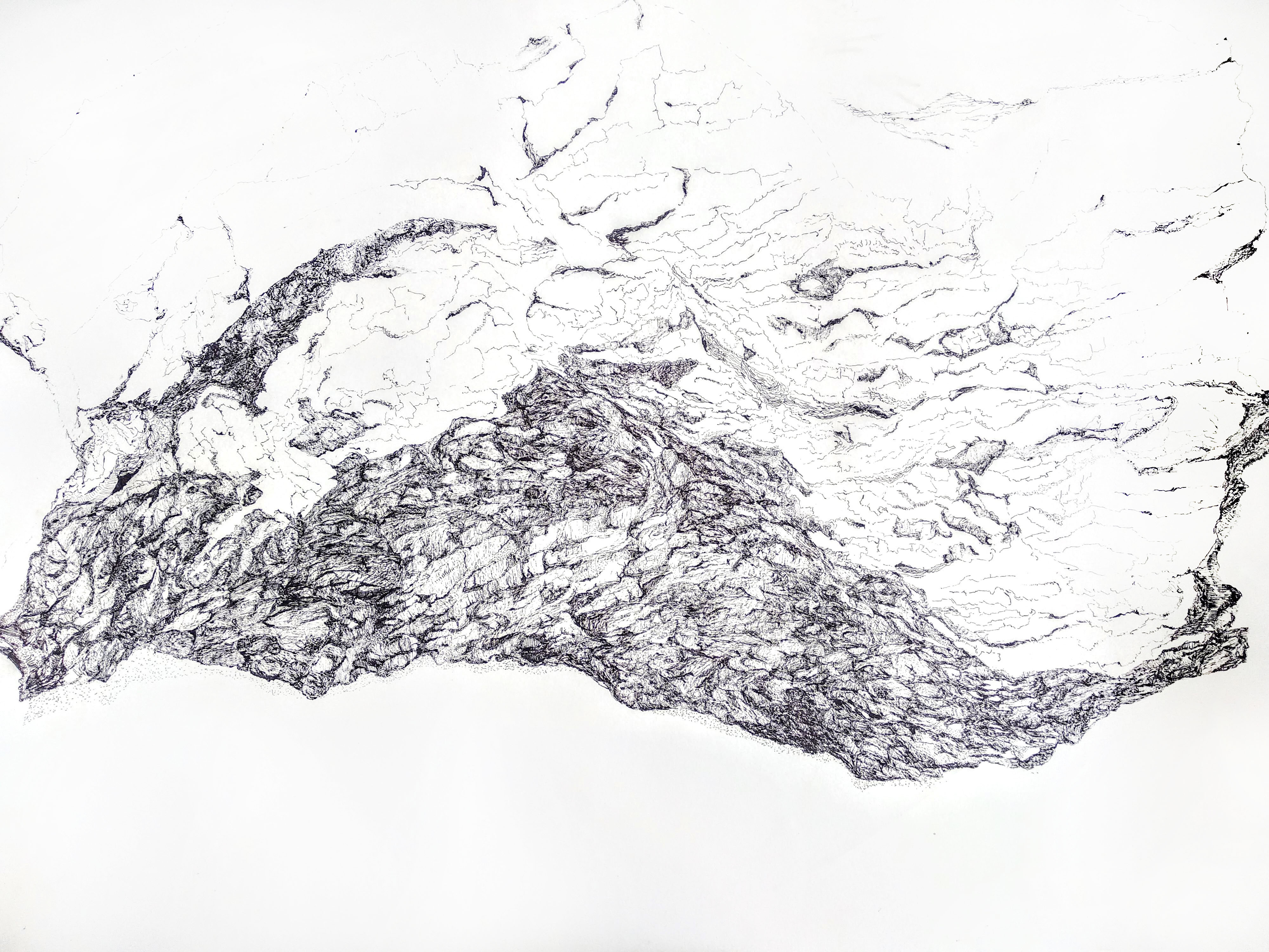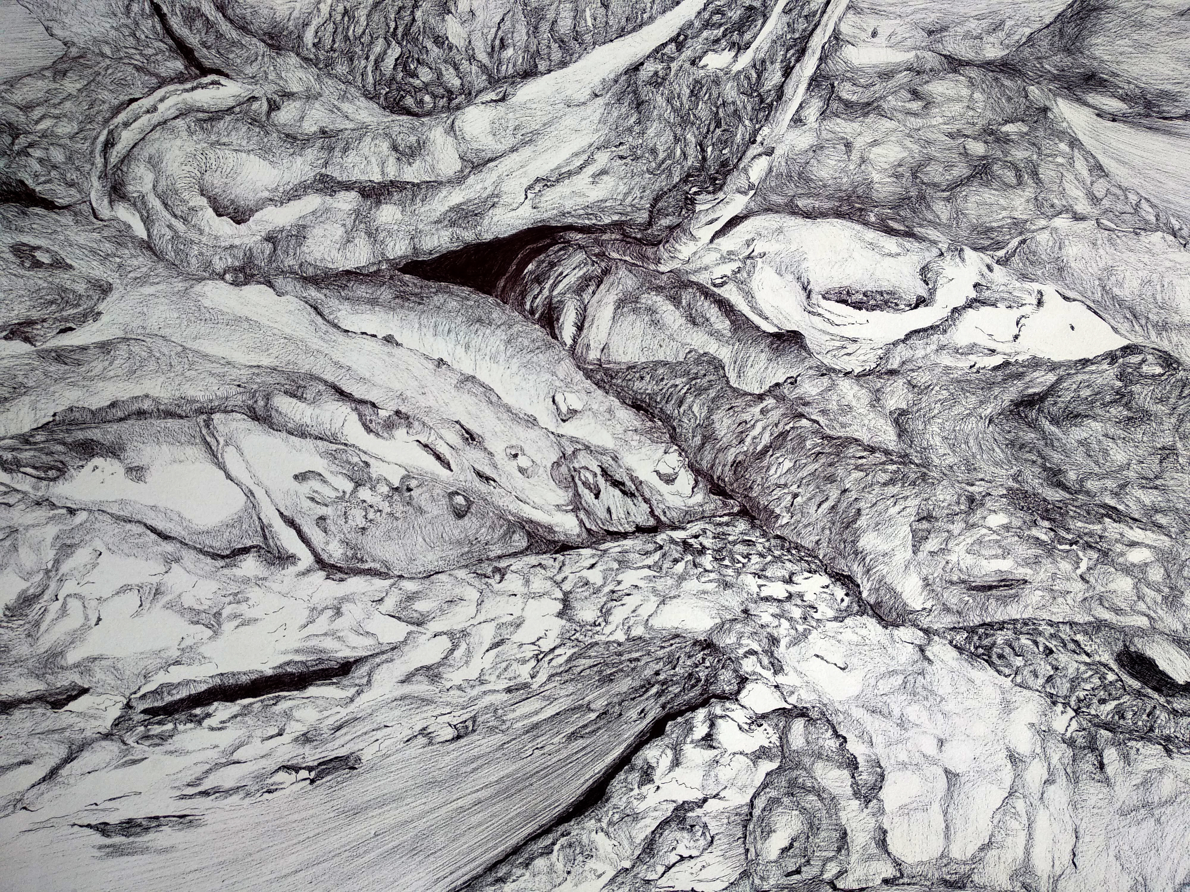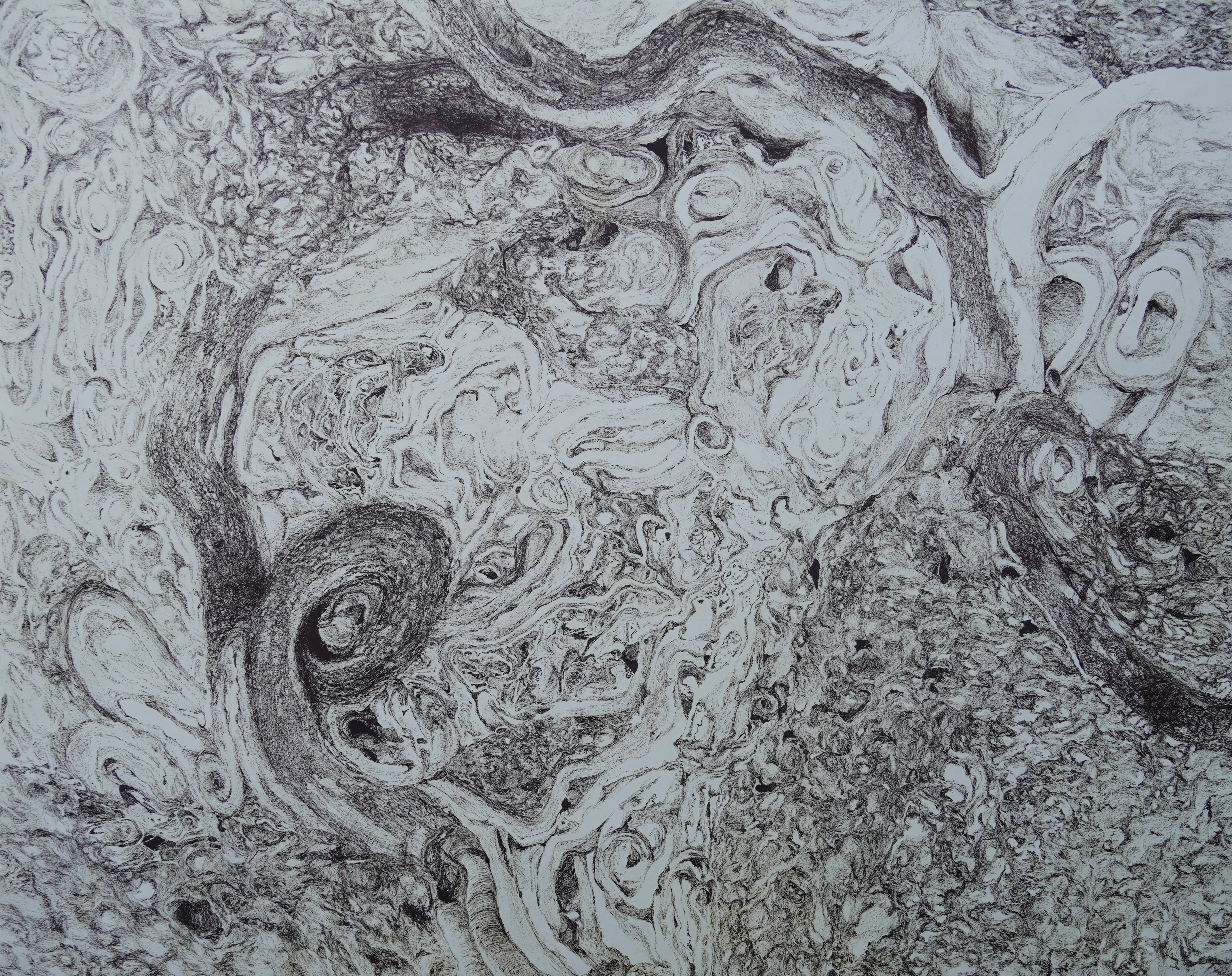 This series of drawings is an on-going engagement that involves choosing small objects and blowing them up into large detailed drawings. Paying close attention to the movement of the deep crevices of the objects, the drawings trace the objects’ material formation.