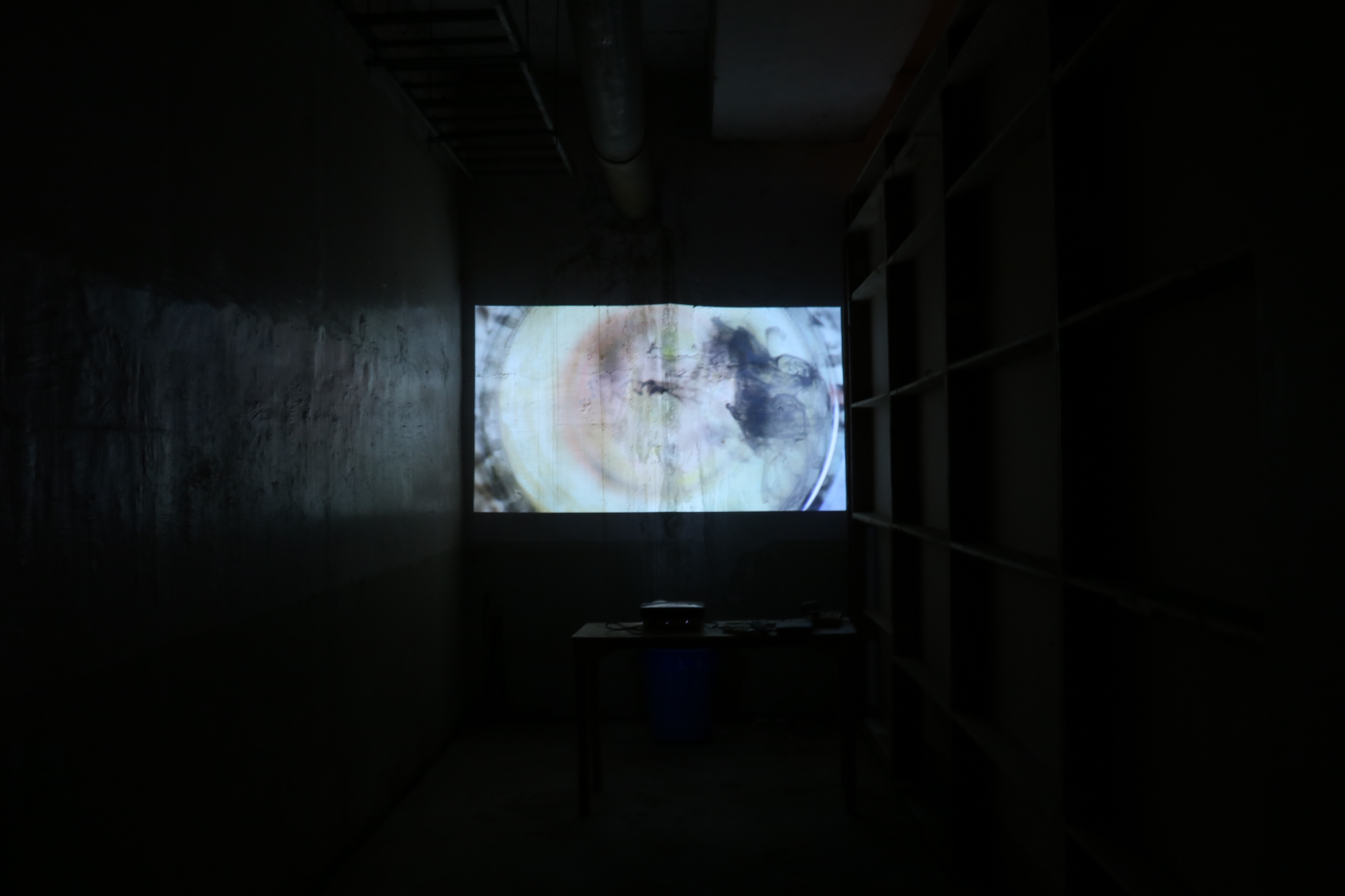 In a smaller room within the same larger space, iron stands were fixed to the wall, holding custom made light boxes that project shadows of dried organic objects.